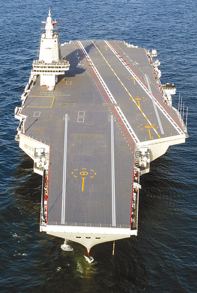 这是首航试验中的中国海军福建舰(5月7日摄,无人机照片)。 新华社发