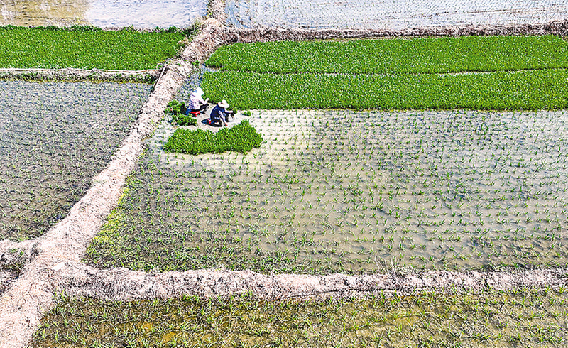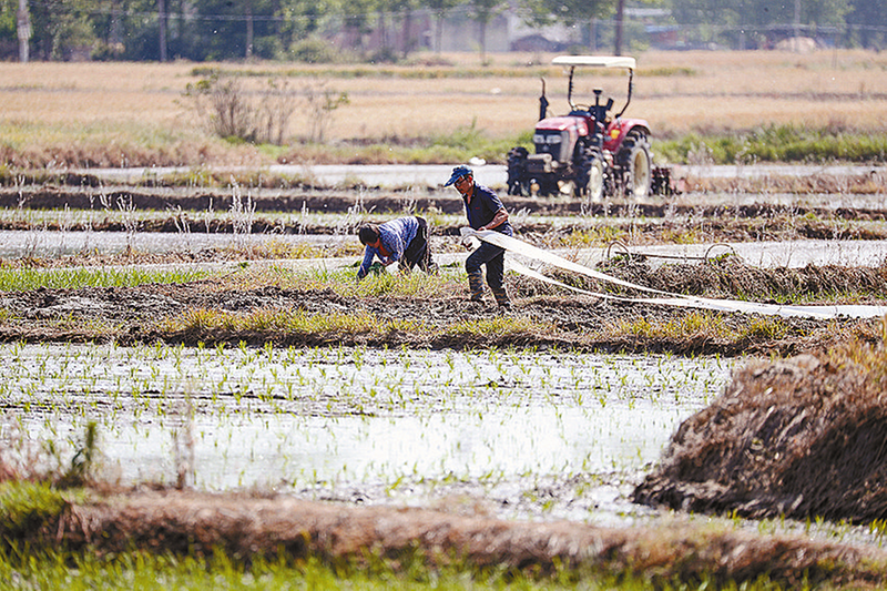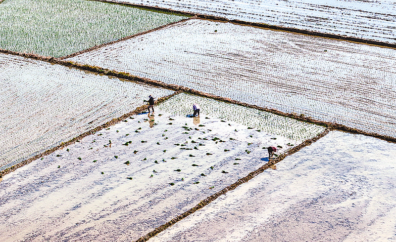孟夏时节,正阳县南部稻区农民抢抓农时开展农事活动,田间一派农忙景象。