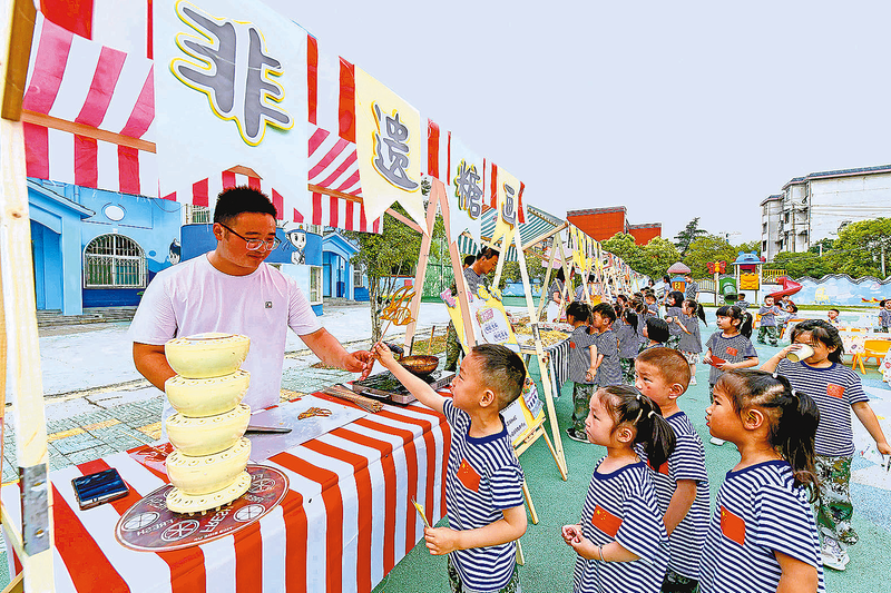 日前,驻确山某部部队幼儿园开展“美食一条街”活动,新鲜的食材、精美的装饰,让孩子们在享受美食、感受美好的同时,懂得感恩生活、热爱生活。
