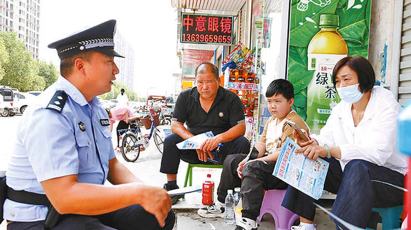 近日,新蔡县公安局组织民辅警深入辖区人流密集场所、沿街店铺等,开展防范电信网络诈骗宣传活动。
