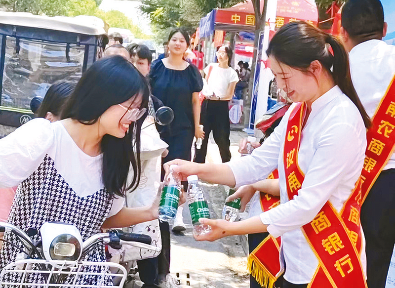 6月7日,汝南农商银行在汝南县2024年全国普通高校招生考试考点附近搭建爱心助考服务站,为考生送水解暑,助力莘莘学子考出水平、实现梦想。 通讯员 杨建国 摄 工行驻马店分行