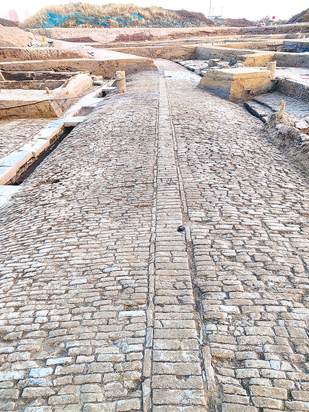 江苏淮安新路遗址内发现的“陈公新路”道路遗存(资料照片)。