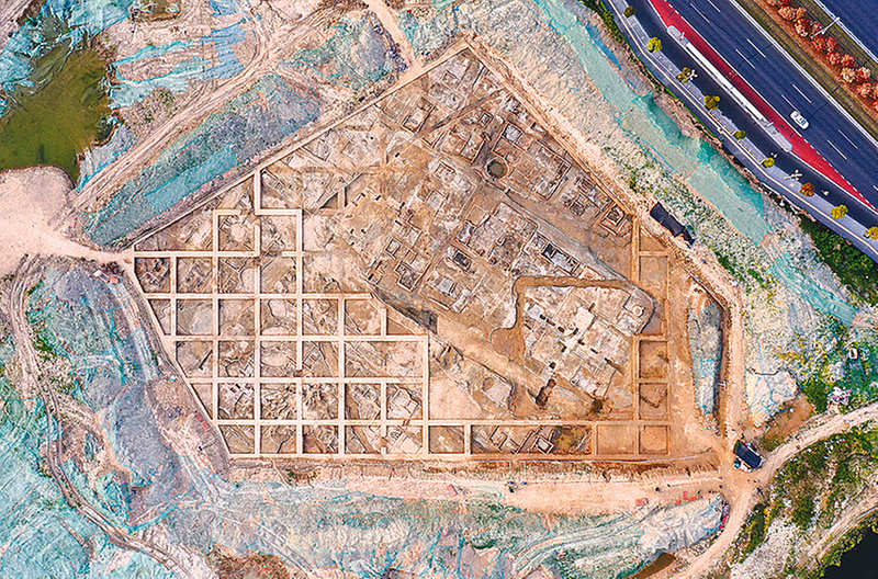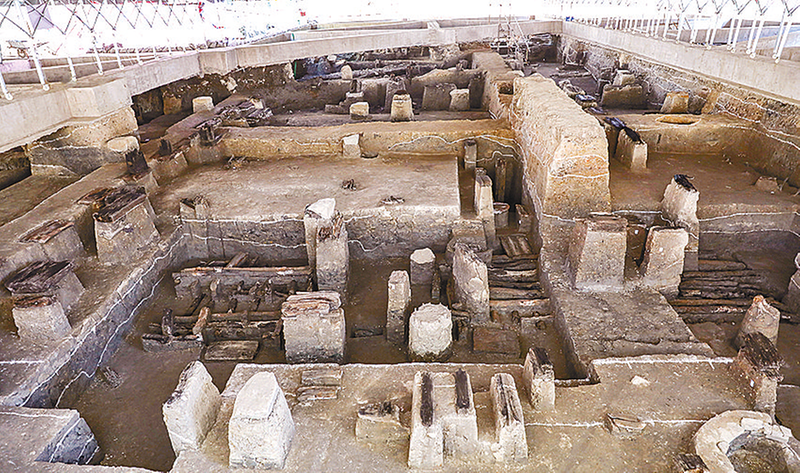 浙江绍兴稽中遗址出土的战国与汉代建筑基址遗迹(资料照片)。