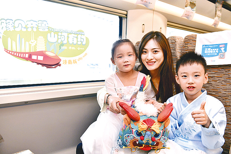 7月18日,乘坐G4007菏泽东至郑州东复兴号列车的旅客在车厢合影留念。