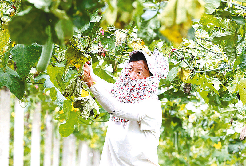 日前,驿城区水屯镇马庄丝瓜种植园,菜农正在采摘成熟的丝瓜。近年来,水屯镇按照“党建+合作社+基地+农户”模式,发展丝瓜等产业,带动村民增收致富。 本报记者 弓华静 摄