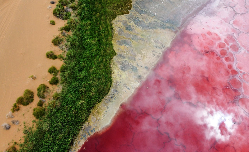 巴丹吉林沙漠中的红海子(2022年7月13日摄,无人机照片)。
