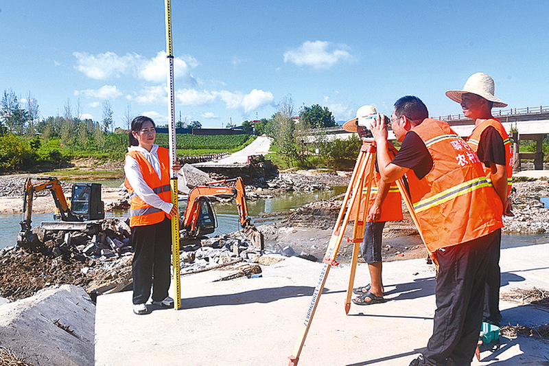 记者还来到驿城区板桥镇被洪水冲毁桥梁改造工程施工现场,只见工程车辆来回穿梭,各种机械设备的轰鸣声此起彼伏,工人在紧锣密鼓地抢抓施工,呈现一派热火朝天的繁忙景象。谢霞和同事全天守在施工现场,对项目的安全生产、质量控制、进度计划等方面工作进行全方位指导,确保施工进度与质量齐头并进。
