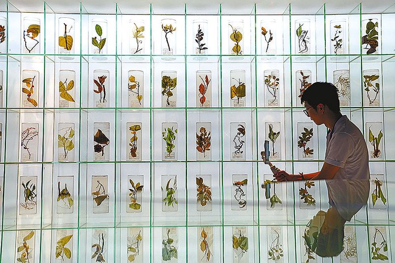 8月24日,参观者在位于广西金秀的瑶医药博物馆拍摄瑶药材标本。广西各具特色的博物馆运用丰富的实物、资料及现代展览技术,展示了各民族文化各美其美、美美与共和中华民族多元一体的绚丽光彩。新华社记者 尹栋逊 摄