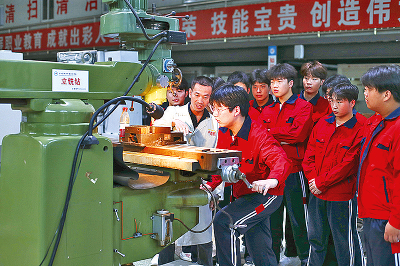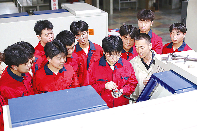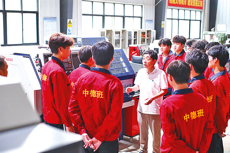 近年来,正阳县职业中等专业学校针对企业所需的职业技术工人,开展“订单培训”,实现产教“无缝对接”,现有在校生6000多名,为企业源源不断输送高技能人才。图为正阳县职业中等专业学校“中德班”老师对学生进行专业指导。