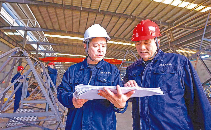 近日,在西平县钟鼎智能制造有限责任公司生产车间,工人正在紧锣密鼓生产玻利维亚60米通信铁塔与利比里亚拉线铁塔两个重要工程项目。
