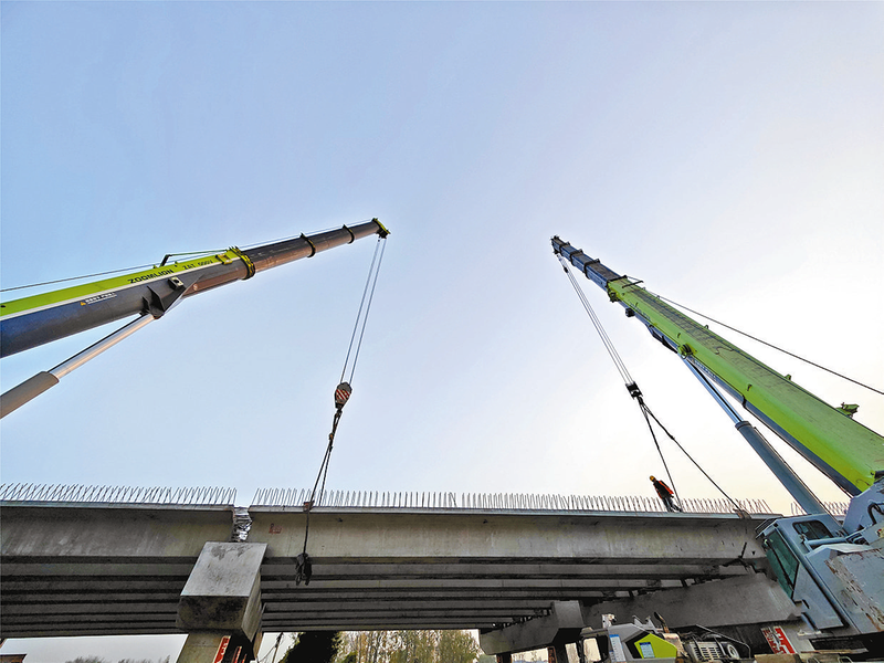 最后一片箱梁成功架设。