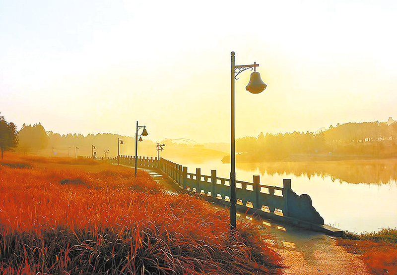 近日,市区滨河公园景色宛如一幅幅淡雅的油画,阳光犹如滤镜将公园渲染得温馨动人。记者沿着滨河公园蜿蜒曲折的滨水栈道徐行,仿佛步入静谧而神秘的世界,贯穿滨河公园的河流在阳光下熠熠生辉,玉带般闪烁着晶莹的光芒,让人流连忘返。