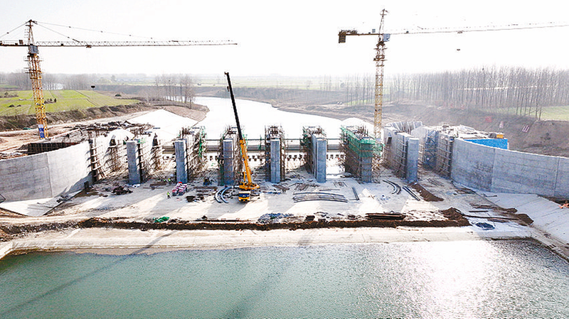 12月13日,在确山县普会寺镇邢河水库泄洪拦蓄闸建设工地,近50名工人正在紧张施工。邢河水库上游为薄山湖水库泄洪道,建设水库泄洪拦蓄闸主要为了充分利用泄洪道排水,满足农业灌溉需求,兼顾工业供水、防洪、改善生态环境和旅游开发。
