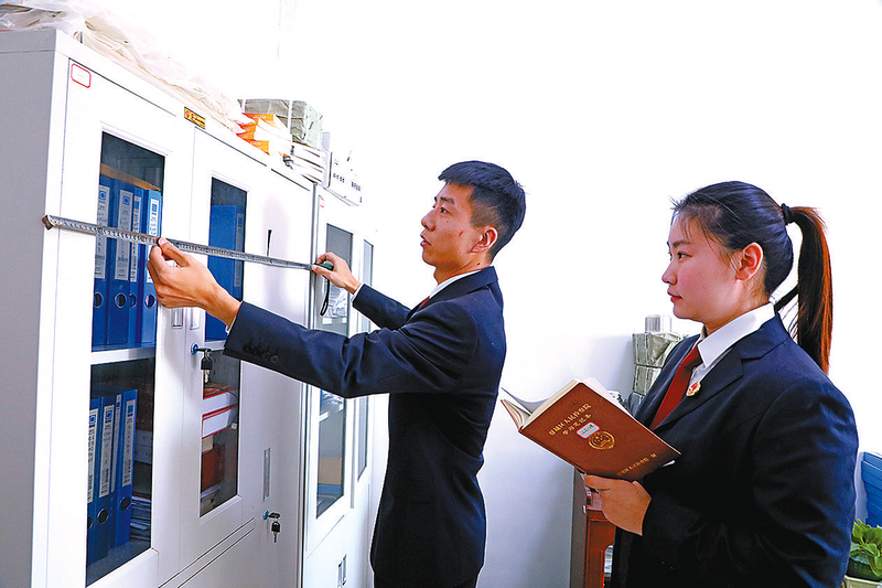 为提升国有资产管理水平,驿城区人民检察院按照“见物点物,不遗不漏”的原则,对所有固定资产及电子设备进行清查盘点,逐一登记,对每件固定资产的采购时间、产品型号、数量、规格、使用人等信息建卡、建档、建账,对照资产信息系统数据进行清查并及时更新资产卡片信息,确保账账相符、账实相符。图为12月17日干警对资产清查进行盘点登记造册。