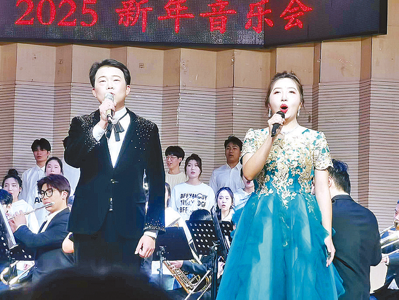 2024年12月31日夜晚,黄淮学院音乐学院音乐厅内欢声笑语,座无虚席,该院2025新年音乐会举行。图为音乐会现场。