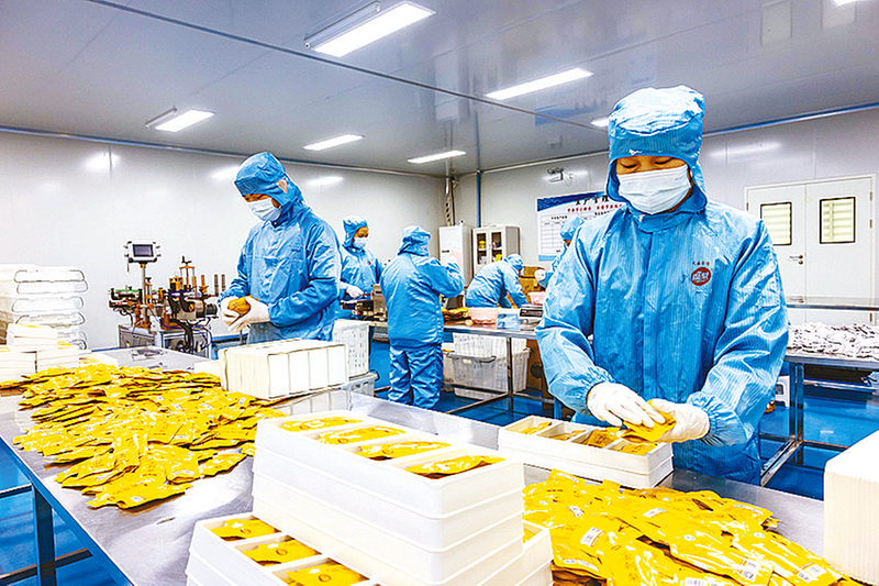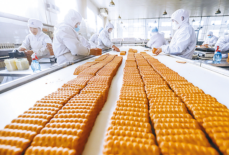 1月2日,工人在河北省遵化市崔家庄镇一家食品加工企业饼干生产车间工作。