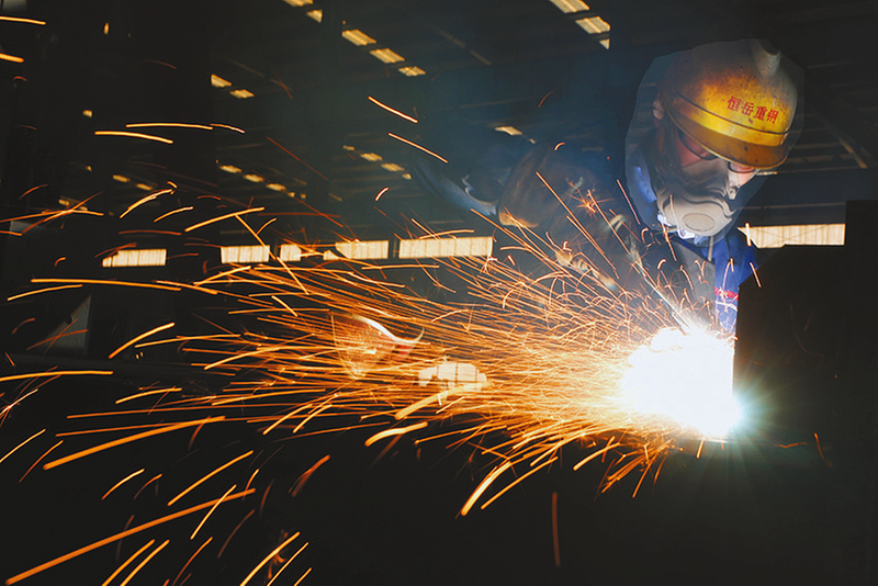 1月3日,在湖南省衡山县高新技术产业开发区,某重钢钢结构工程有限公司员工在进行建筑钢结构装备的生产加工作业。 新华社发