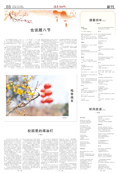 “腊八不吃腊米粥,媳子撵着男人哭。”再穷的人家也会在这一天做一顿米饭。于是,腊八这天的村庄里到处都散发着大米饭的清香。连村庄上空袅袅升起的炊烟里,都荡漾着腊八节的气息。