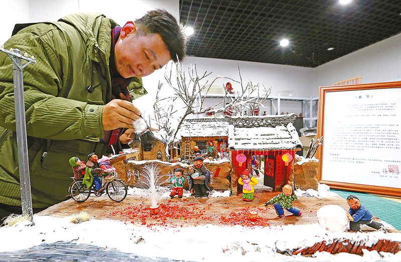 近日,驻马店市级非物质文化遗产面塑传承人张新芳,经过一个多月的精心创作,用面粉、糯米粉等原料创作的作品《春节》完成。