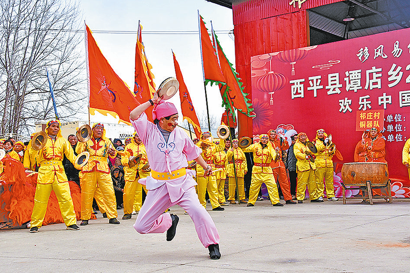 2月6日上午,西平县谭店乡举行2025年“我们的节日·春节”欢乐中国年暨第九届大铜器展演。展演中,各指挥手持边鼓,腾、挪、跳、跃,将手中的边鼓舞得上下翻飞,现场人山人海,不时迸发出喝彩声、欢笑声。 本报记者 许 静 本报见习记者 陈 培 摄影报道