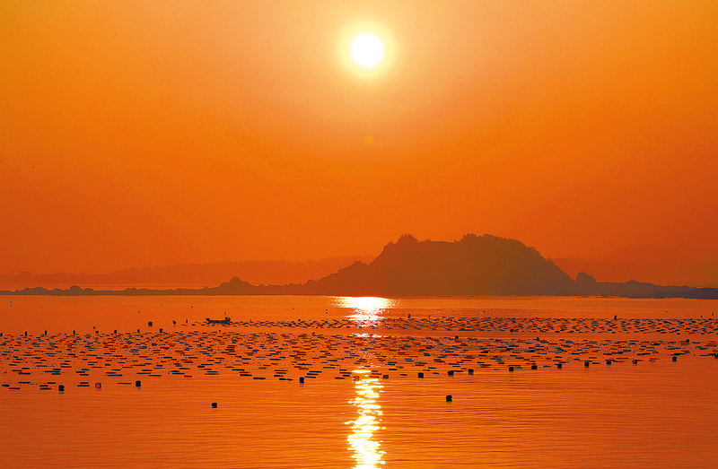 这是夕阳下的莆田南日岛海域海上田园综合体景色(2月27日摄)。