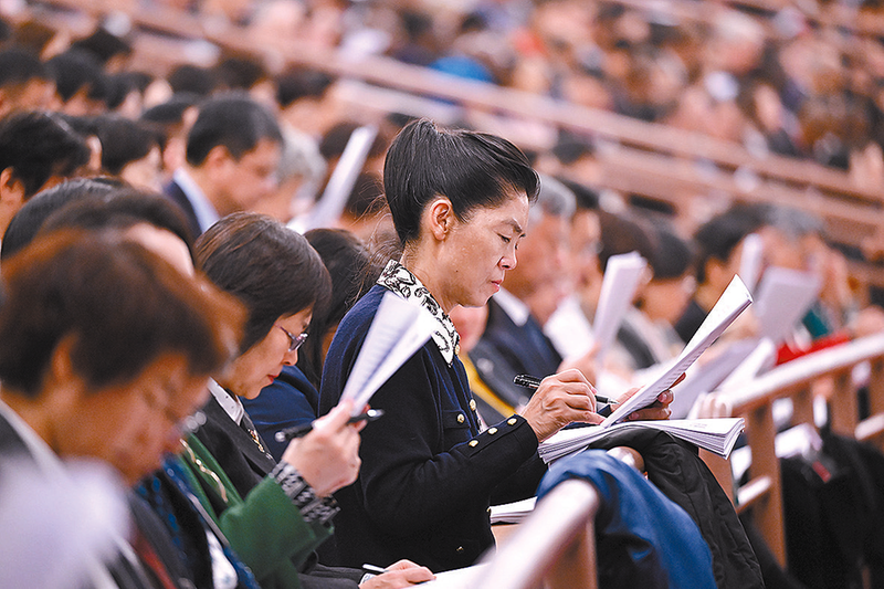 3月5日上午,第十四届全国人民代表大会第三次会议在北京人民大会堂开幕。这是全国政协委员列席大会。 新华社记者 高 洁 摄