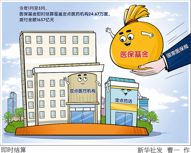 记者4月16日从国家医保局获悉,今年1月至3月,医保基金即时结算覆盖定点医药机构24.67万家,拨付金额1657亿元。 新华社发 曹 一 作