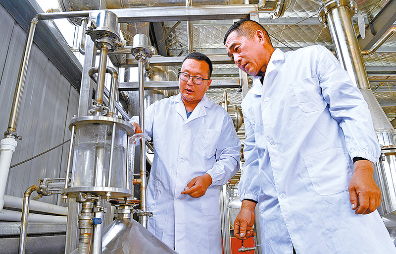河南省中香药业有限公司立足于中草药和芳香植物种植,以中药油、芳香精油、中草药提取物生产提取为基础,延伸至化妆品研发、生产及销售。该公司采用“公司+农户”的订单模式,种植玫瑰、洋甘菊、艾草、薄荷等中草药和芳香植物品种,年可生产中药油和芳香精油5000公斤、植物提取物1.2万吨、化妆品1500万瓶,实现了从种植、提取、深加工到销售服务的全产业链发展。 本报记者 弓华静 摄