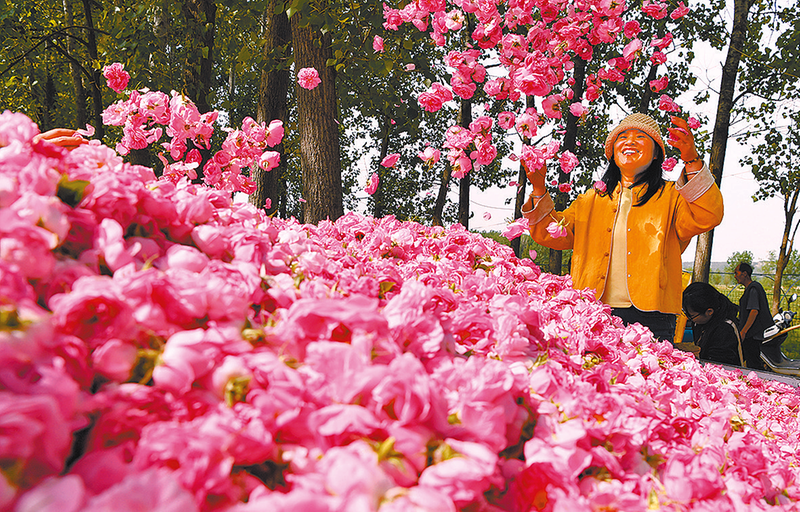 近日,位于泌阳县王店镇的千亩大马士革玫瑰种植基地迎来了首茬收获季,工人们正忙着采摘、打包、运送玫瑰。