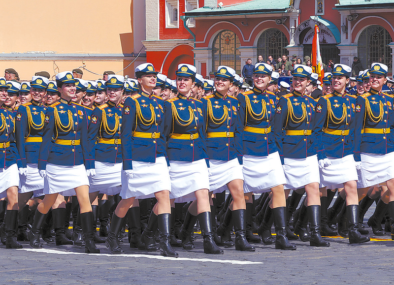 5月9日,在俄罗斯首都莫斯科,女兵参加纪念苏联伟大卫国战争胜利80周年阅兵式。