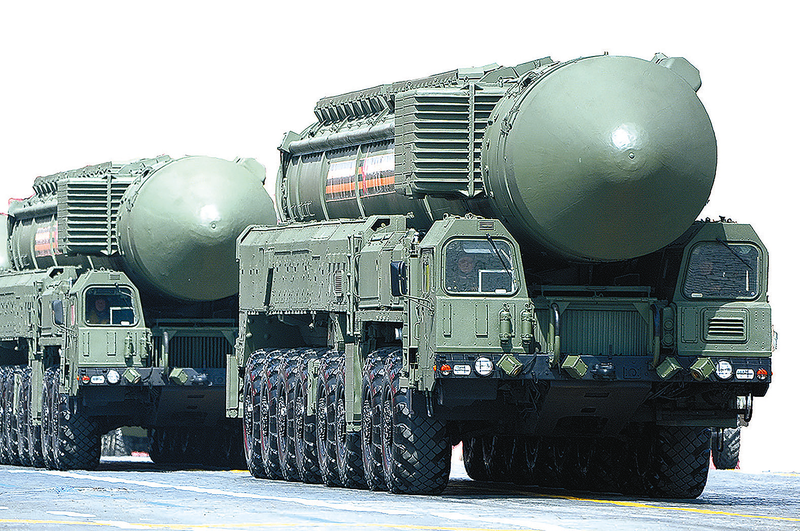 这是5月9日在俄罗斯首都莫斯科举行的纪念苏联伟大卫国战争胜利80周年阅兵式上拍摄的洲际弹道导弹。