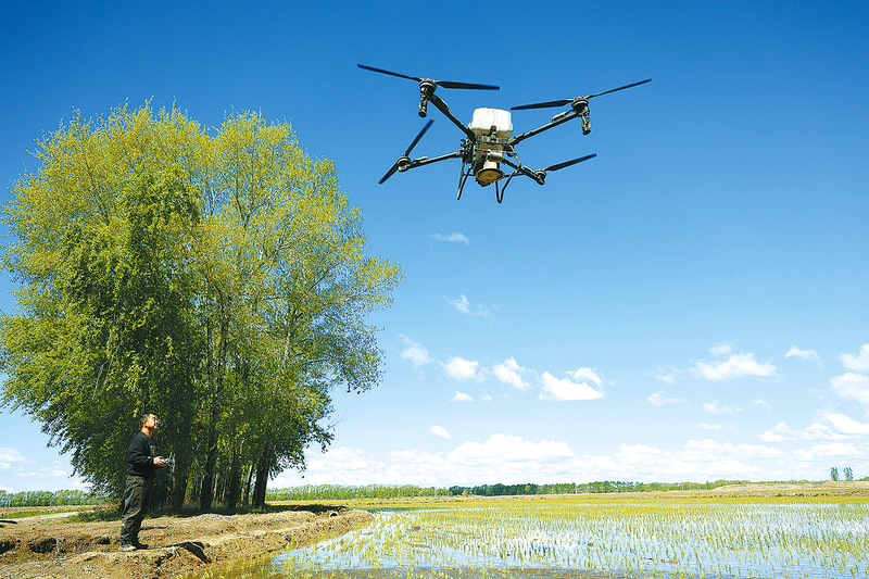 5月21日,在北大荒集团黑龙江绥滨农场有限公司东井管理区,操作员操控搭载北斗导航系统的植保无人机对即将施返青肥的地块进行打点。连日来,黑龙江垦区播种、插秧、田间管理火热进行,搭载着先进设备的现代农机装备,在田野纵横驰骋。目前,黑龙江省农业综合机械化水平为99.07%,植保无人机保有量3.3万架,作业面积超过5亿亩次,均居全国首位。新华社发