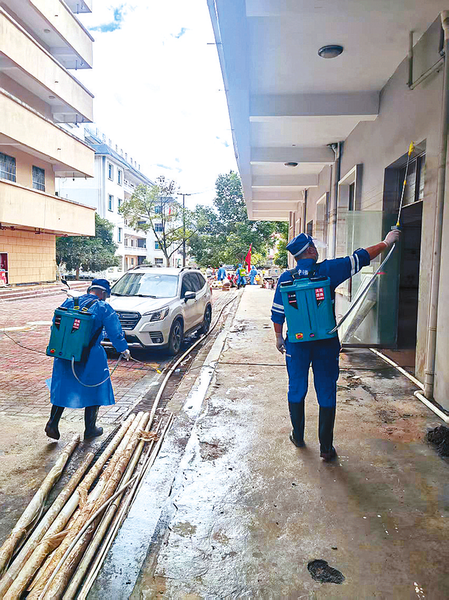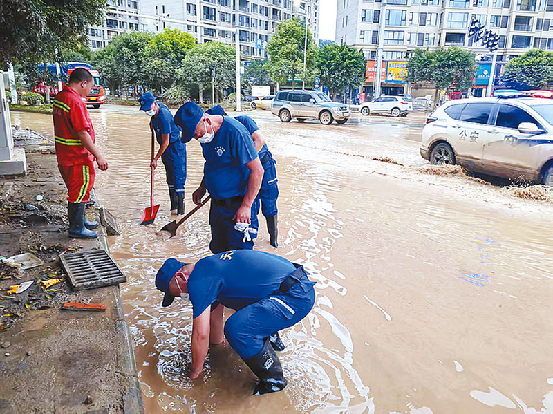 清淤现场,队员们徒手伸进浑浊的泥水中,清理堵塞下水道的杂物,哪怕手臂被划伤也不在乎。