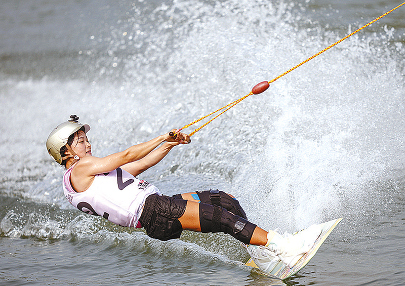 8月8日,中国选手徐露在女子资格赛中。当日,2025年成都世运会索道滑水资格赛在三岔湖桃花岛赛场举行。 新华社记者 贝 赫 摄