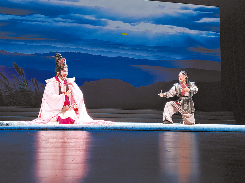 8月14日晚,豫剧《许穆夫人》在确山县工人文化宫演出现场。