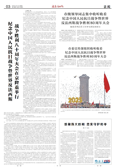 市级领导同志集中收听收看纪念中国人民抗日战争暨世界反法西斯战争胜利80周年大会