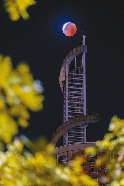 9月8日在昆明拍摄的月食景象。北京时间9月7日午夜至8日凌晨,全球多地天宇上演壮观的月全食现象。月全食的原理是月、地、日运行至一条直线时,月球进入地球的本影,太阳投射在月球上的光完全被地球挡住。由于地球大气层对太阳光有折射和散射作用,其中波长最长的红光落在月面上最多,因而出现“红月亮”。 新华社发