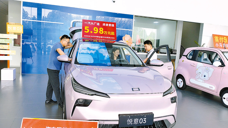 9月9日,在驻马店一汽奔腾腾安旗舰店,奔腾悦意03新能源汽车亮相。该车充电10分钟可行驶120公里,为同级纯电SUV市场的热门选择,尤其适合城市通勤。(曾富强 吴 丹)