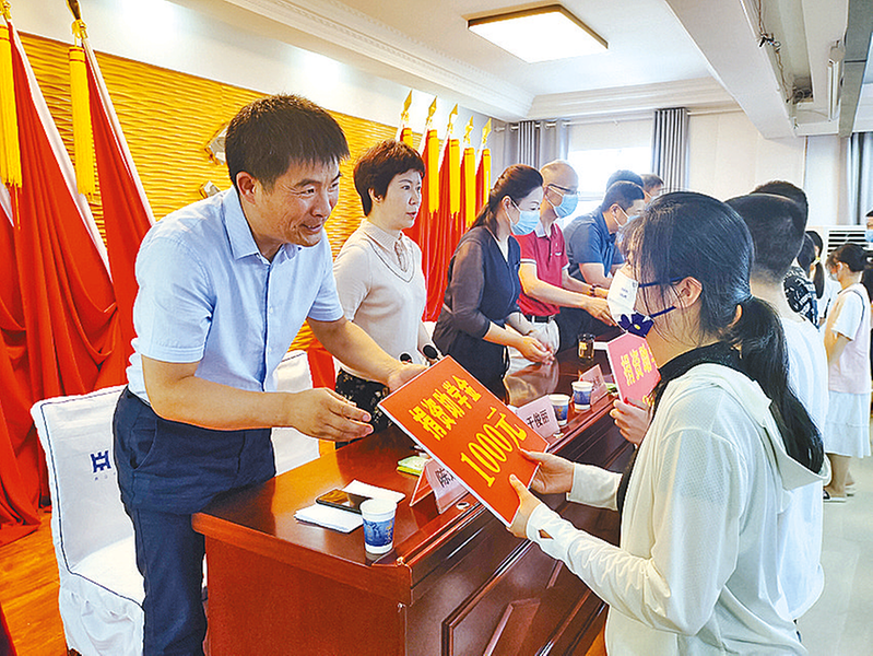 陈运强向受助学生发放助学金。 (资料图片) 十年前,在黄淮学院大学生创新创业园C403室,河南省北斗科技有限公司(以下简称北斗科技)诞生。这是一家专注于计算机信息系统集成服务、北斗导航定位技术的应用推广、信用信息平台的建设和运营等“硬核”科技领域的企业,历经艰难发展,成长为国家级高新技术企业。今年5月,这家以技术起家的公司又获得了一项荣誉——“全国文明单位”。