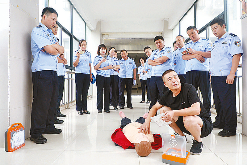 近日,上蔡县公安局组织开展除颤仪(AED)使用技能培训,民辅警代表30多人参加培训。