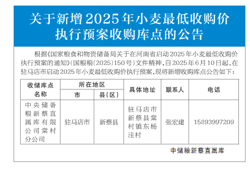 关于新增2025年小麦最低收购价执行预案收购库点的公告