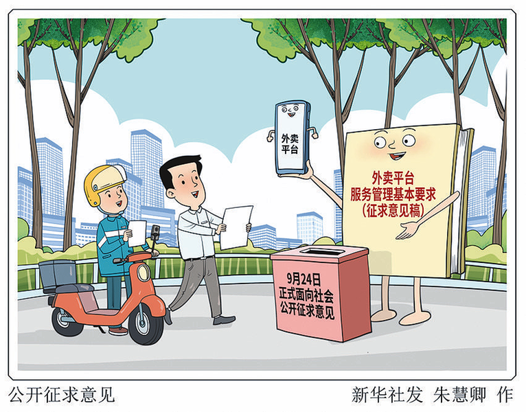新华社北京9月24日电(记者 赵文君)记者24日从市场监管总局了解到,由市场监管总局组织起草的《外卖平台服务管理基本要求(征求意见稿)》,24日向社会公开征求意见。