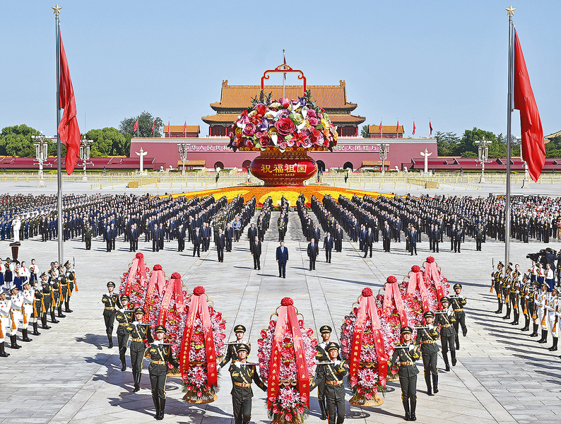9月30日上午,党和国家领导人习近平、李强、赵乐际、王沪宁、蔡奇、丁薛祥、李希、韩正等来到北京天安门广场,出席烈士纪念日向人民英雄敬献花篮仪式。新华社记者 谢环驰 摄 新华社北京9月30日电 铭记英烈功勋,砥砺奋斗精神。烈士纪念日向人民英雄敬献花篮仪式30日上午在北京天安门广场隆重举行。党和国家领导人习近平、李强、赵乐际、王沪宁、蔡奇、丁薛祥、李希、韩正等,同各界代表一起出席仪式。