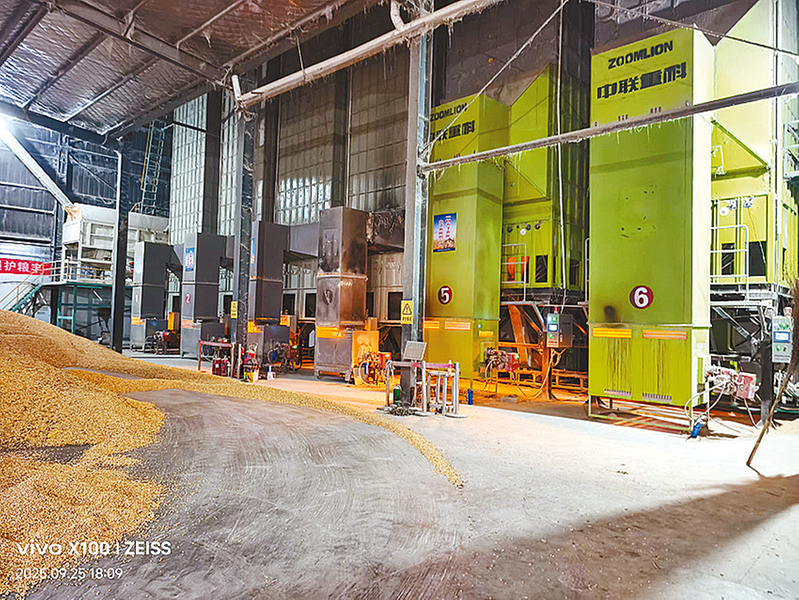 10月9日,遂平县供销合作社常庄为农服务中心内,6台谷物烘干机正全速运转。该中心烘干设备昼夜不停,日烘干量最高可达800吨。目前,已累计烘干玉米超1万吨,全力保障秋粮颗粒归仓。