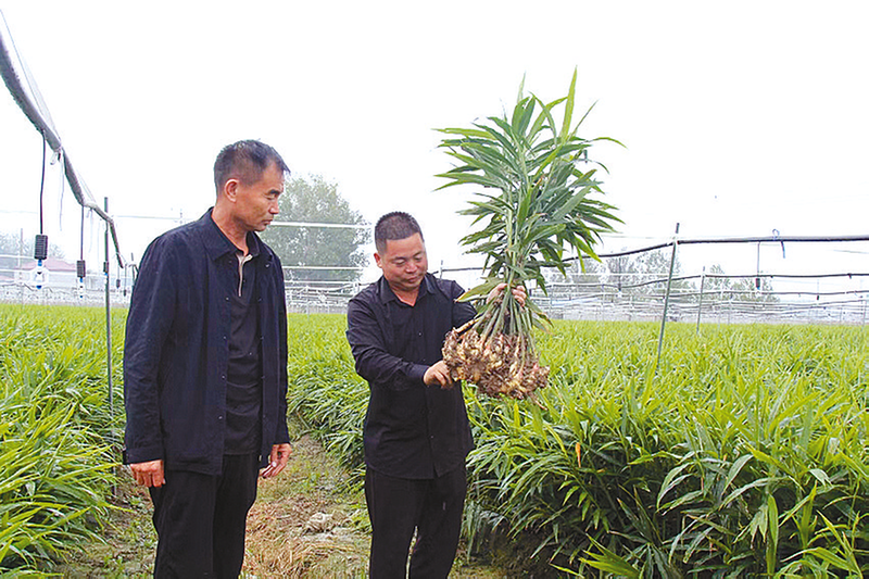 近日,在新蔡县陈店镇闫楼村诚彬种植农场,70多亩连片的姜田郁郁葱葱,肥厚的姜叶在微风中舒展,空气中弥漫着淡淡的姜香,呈现一派长势喜人的丰收景象。