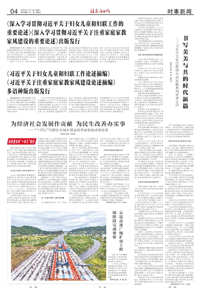 《习近平关于妇女儿童和妇联工作论述摘编》《习近平关于注重家庭家教家风建设论述摘编》多语种版出版发行