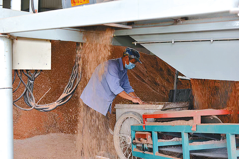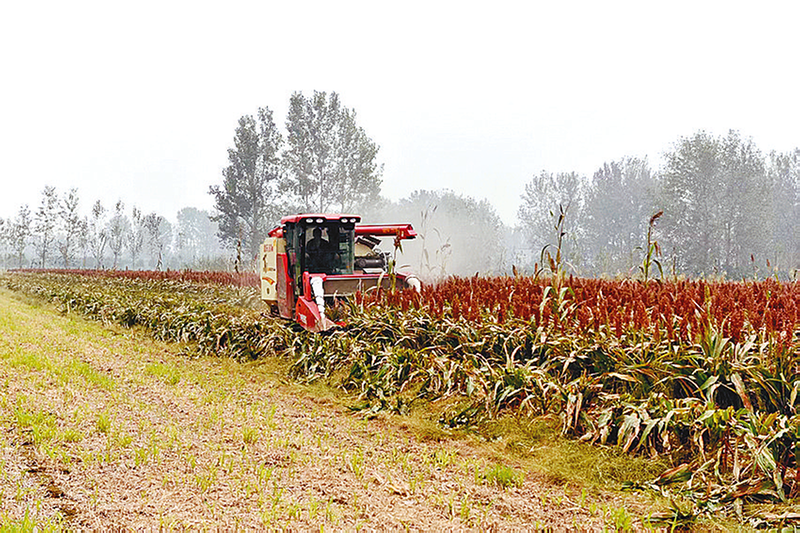 近日,新蔡县练村镇甘湾村300多亩高粱迎来丰收季,6台履带式收割机开始抢收作业,收获的高粱被迅速装车运往附近烘干点进行烘干入仓。