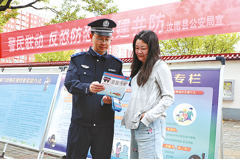 为推动国家安全宣传教育工作深入普及,进一步增强辖区群众反恐防恐意识,近日,汝南县公安局组织民警开展反恐防恐宣传活动。 通讯员 王航天 摄