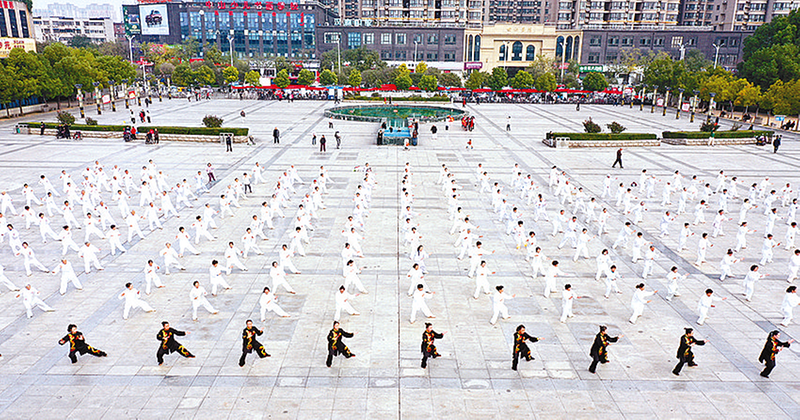 近日,我市“重阳银龄行动”太极拳展示活动在市区世纪广场举行。300多名老年太极爱好者齐聚一堂,以行云流水的太极招式展现银龄风采,传递健康养老的生活理念。
