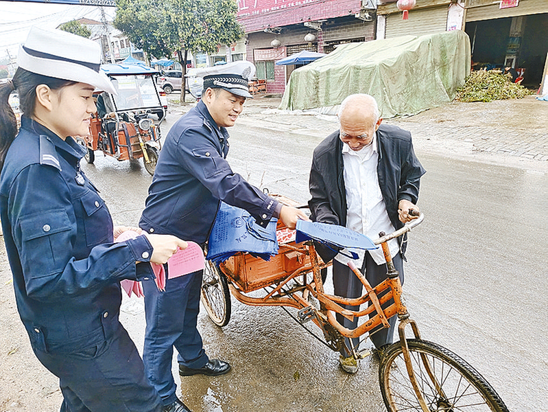 近日,上蔡县公安局交警大队民警积极响应交通安全宣传号召,将交通安全知识送到群众身边,为乡村道路交通安全筑牢防线。